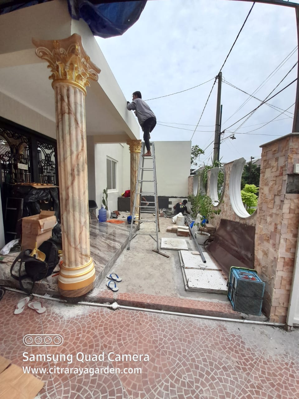 Dan terkadang, kita menginginkan sesuatu yang baru, mewah, dan murah untuk dekor rumah kita. Emang ada? Ada. Ini dia tips cara mengubah rumah menjadi lebih mewah dengan cara mengubah tiang teras rumah yang hanya terbuat dari beton cor agar bisa menjadi deretan tiang yang seolah terbuat dari bebatuan marmer. Cukup membayangkannya saja sudah jelas bagaimana pemandangan depan rumah kita menjadi lebih elegan dan mewah.